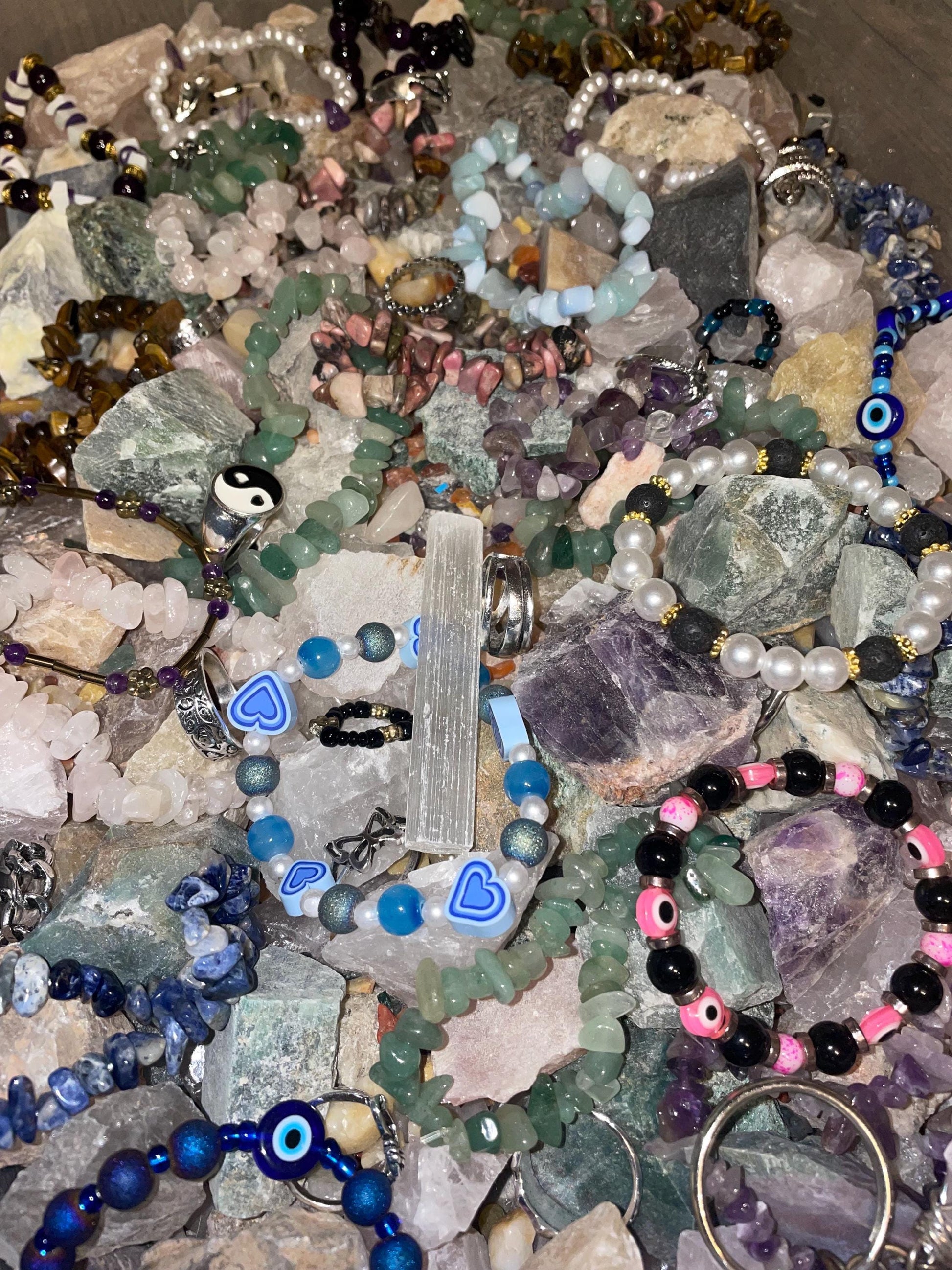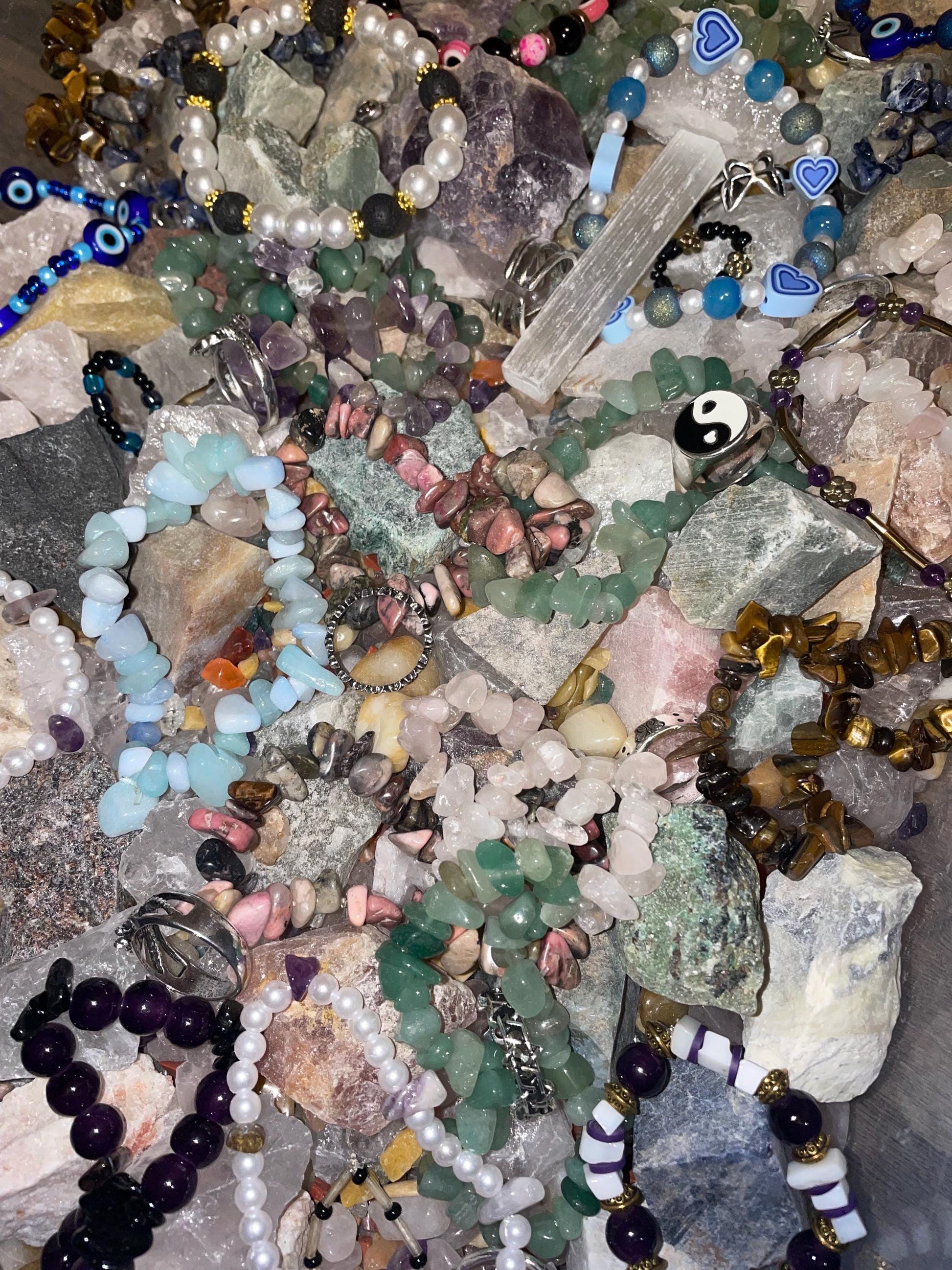 *Each scoop is very unique and can vary in colors, sizes, and quantities of crystals, bracelets, rings, and keychains.