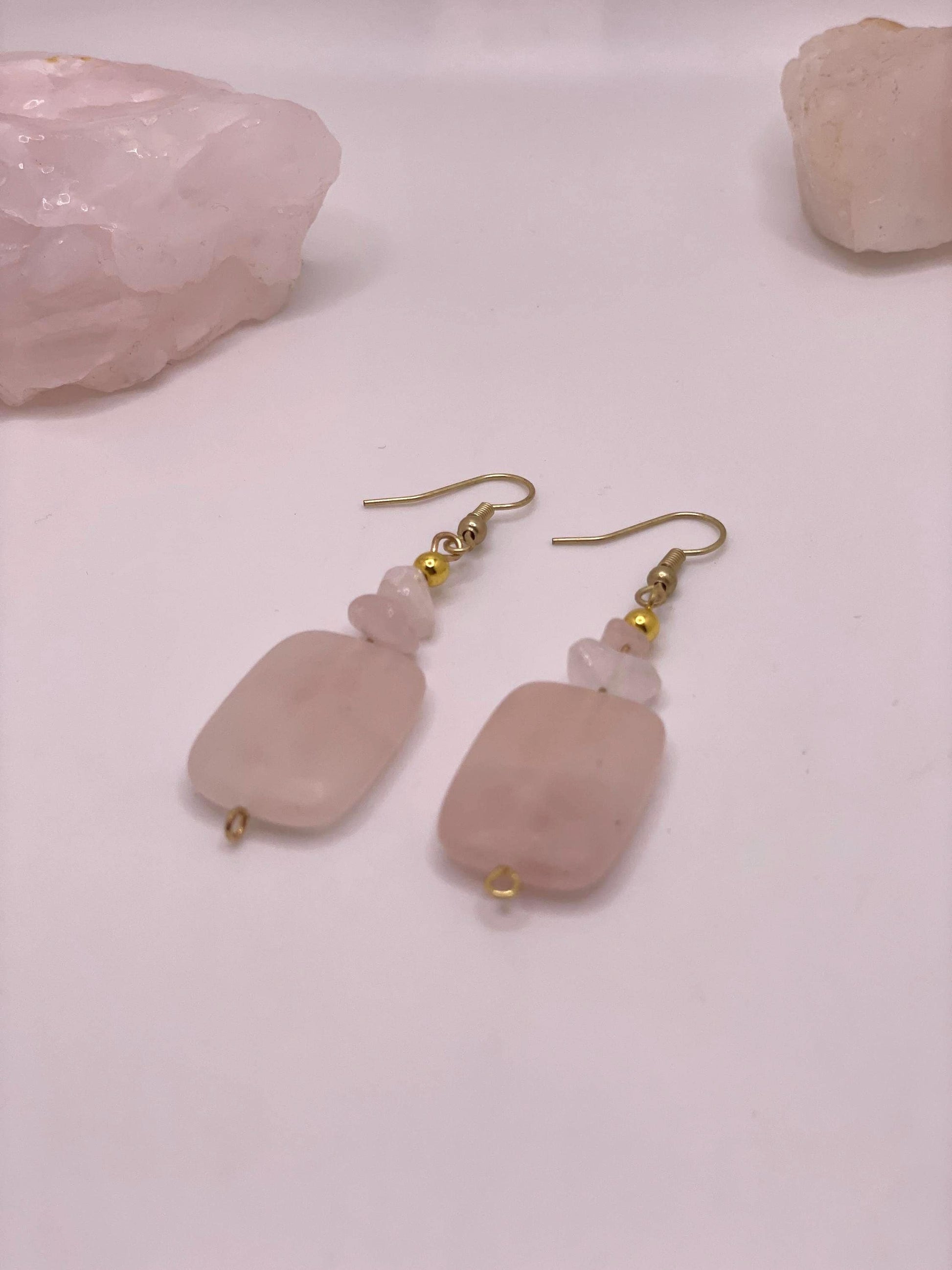 These stunning earrings are made with Rose Quartz. It is perfect for anyone who wants an abundance of love in their life. Itโs a great nurturing and healing stone and will benefit all types of relationships, romantic or platonic, and especially your relationship with yourself. ๐