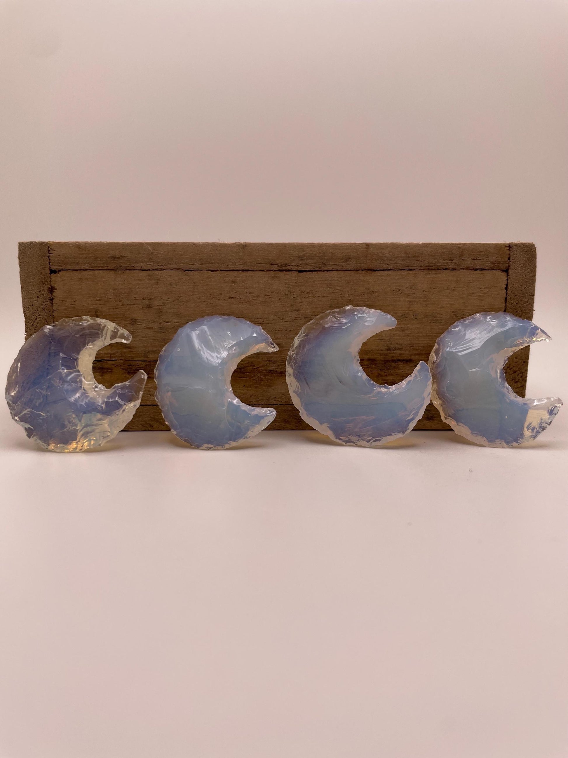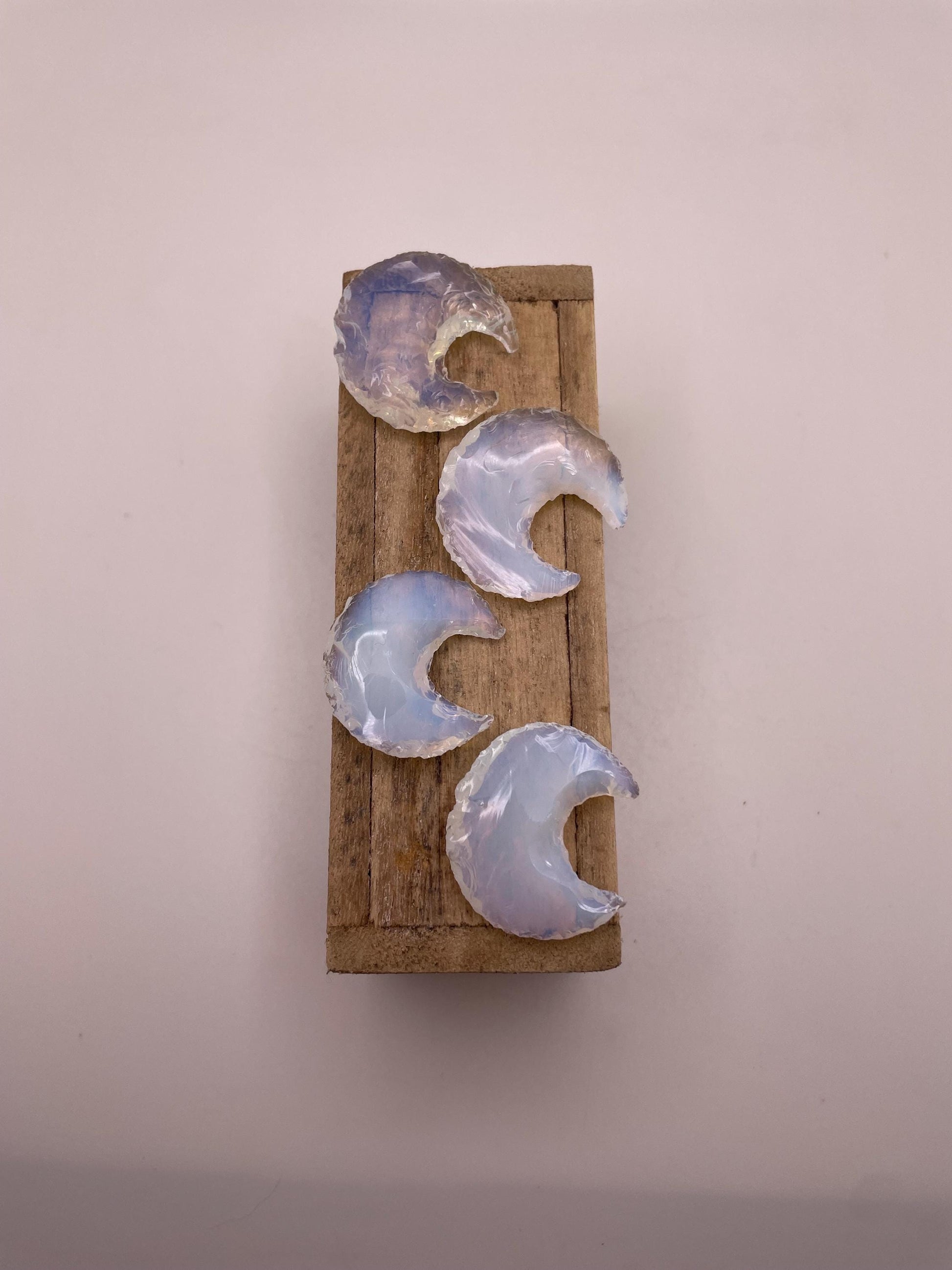 Opalite Crystal Moon Carving: Calming Meditation Stone