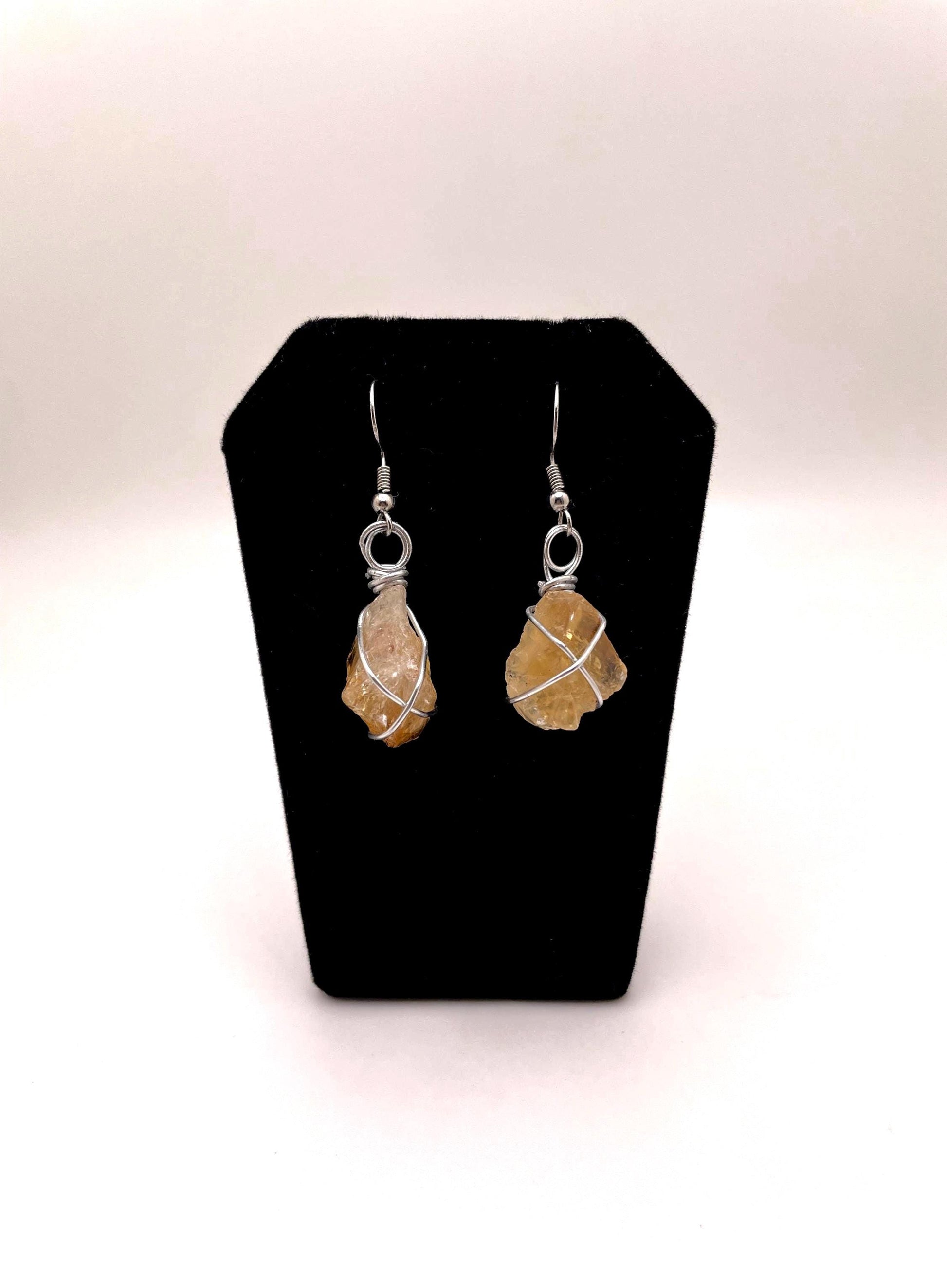 Wire Wrapped Citrine Crystal Dangle Earrings